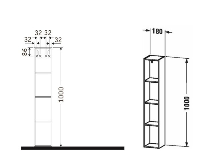 Мебельная полка, Duravit, L-Cube, ширина, мм-180, глубина, мм-180, высота, мм-1000, тип установки-подвесной, материал-ДСП ламинат, цвет-белый глянцевый, вертикальная, 4 отделения Мебельная полка, Duravit, L-Cube, шгв 180*180*1000, цвет-белый глянцевый, вертикальная