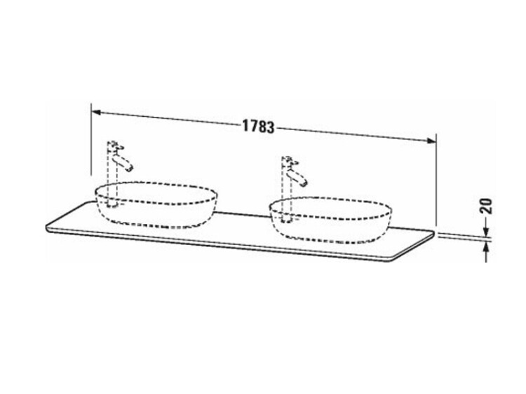 Столешница, Duravit, Luv, ширина, мм-1783, глубина, мм-595, высота, мм-20, тип установки-на тумбу, вырез под раковину-два, материал-кварцевый камень, цвет-белый структурный Столешница, Duravit, Luv, шгв 1783*595*20, цвет-белый структурный