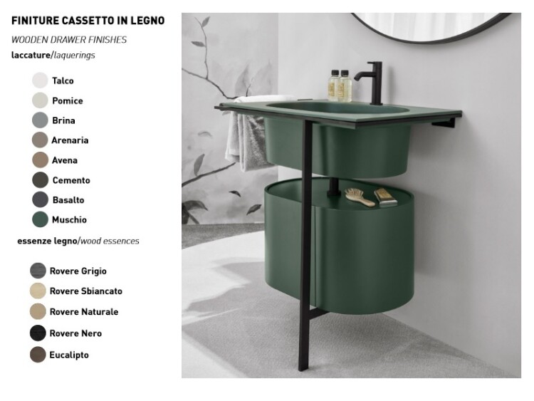 Тумба под раковину, CIELO, Kyros, ширина, мм-600, глубина, мм-380, высота, мм-340, тип установки-подвесной, форма мебели-овальная, раковина-установка невозможна, консоль/столешница-есть, дверцы-есть, открывание-распашное, цвет-Muschio Тумба под раковину, CIELO, Kyros, шгв 600*380*340, цвет-Muschio
