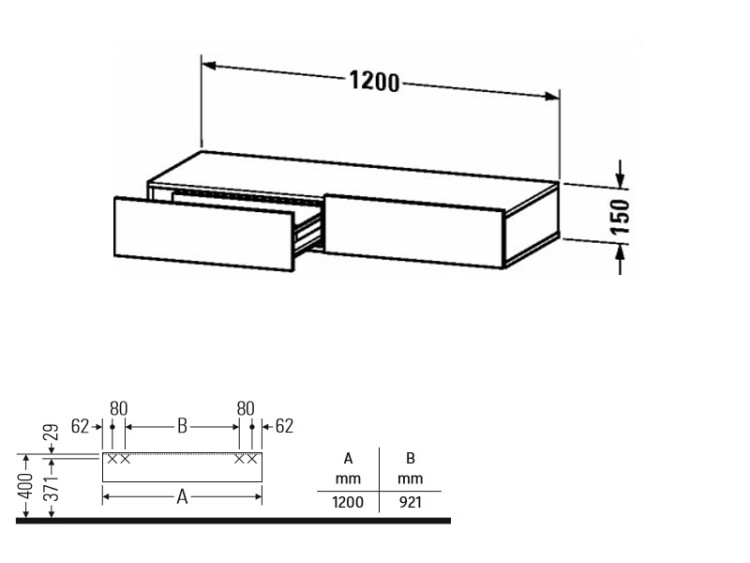 Тумба, Duravit, Durastyle, ширина, мм-1200, глубина, мм-440, высота, мм-150, тип установки-подвесной, форма мебели-прямоугольная, ящики-2, открывание-выдвижное, крепления в комплекте, материал корпуса-ДСП меламиновая смола, материал фасада-ДСП меламиновая смола, цвет-белый глянцевый, максимальная нагрузка-150 кг Тумба, Duravit, Durastyle, шгв 1200*440*150, цвет-белый глянцевый