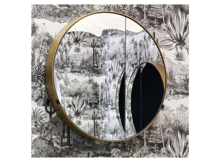 Зеркальный шкаф, CIELO, I Catini, ширина, мм-900, глубина, мм-120, высота, мм-900, тип установки-настенный, дверцы-есть, открывание дверей-распашное, цвет корпуса-Brushed Bronze, круглый Зеркальный шкаф, CIELO, I Catini, шгв 900*120*900, цвет корпуса-Brushed Bronze