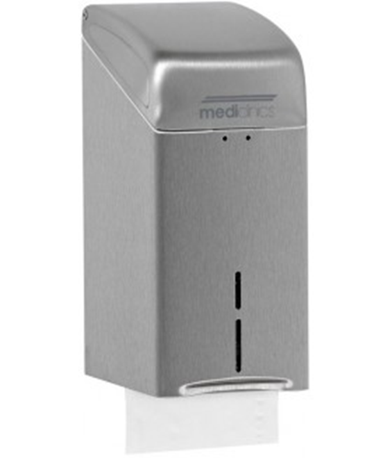 Диспенсер для туалетной бумаги, Mediclinics, ширина, мм-116, глубина, мм-130, высота, мм-252, тип установки-настенный, вместимость 400 листов, материал-нержавеющая сталь AISI 304, цвет-сталь матовая Диспенсер для туалетной бумаги, Mediclinics, шгв 116*130*252, цвет-сталь матовая