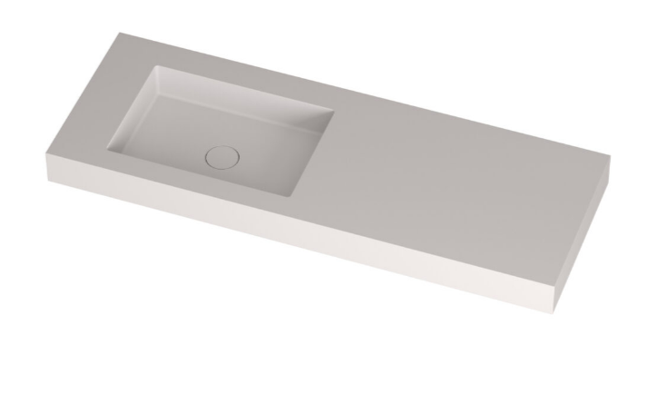 Столешница, MOBO, Normal, ширина, мм-1204, глубина, мм-465, высота, мм-100, тип установки-на тумбу, с интегрированной раковиной слева, вырез под смеситель-отсутствует, материал-Solid surface, в комплекте-донный клапан Solid surface Клик-клак вровень с дном, цвет-белый матовый Столешница, MOBO, Normal, шгв 1204*465*100, с раковиной слева и донным клапаном Клик-клак вровень с дном, цвет-белый матовый