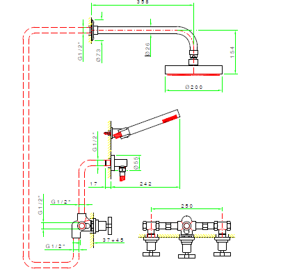 Душевой комплект, Nicolazzi, Mac Kinley 05, смеситель-в комплекте, монтаж смесителя-настенный встраиваемый, тип открывания воды-вентильный, внутренняя часть-необходимо заказать, излив-нет, верхний душ-есть, форма верхнего душа-круглая, размер верхнего душа-200*200, держатель верхнего душа-есть, вынос, мм-358, ручной душ-в комплекте, вид-цилиндрический, шланг-есть, держатель для ручного душа-есть, шланговое подключение-есть, вид ручки-29 Mac Kinley 05, цвет-Brushed Brass Душевой комплект, Nicolazzi, Mac Kinley 05, цвет-Brushed Brass