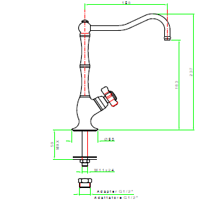 Кран для воды, Nicolazzi, Mini D.Anglaises, тип открывания воды-однорычажный, тип регулирования воды-керамический картридж, монтаж-на раковину/столешницу, отверстия для монтажа-1, высота, мм-237, вынос излива, мм-158, стандарт подвода воды-1/2", цвет-Raw Brass Кран для воды, Nicolazzi, Mini D.Anglaises, цвет-Raw Brass