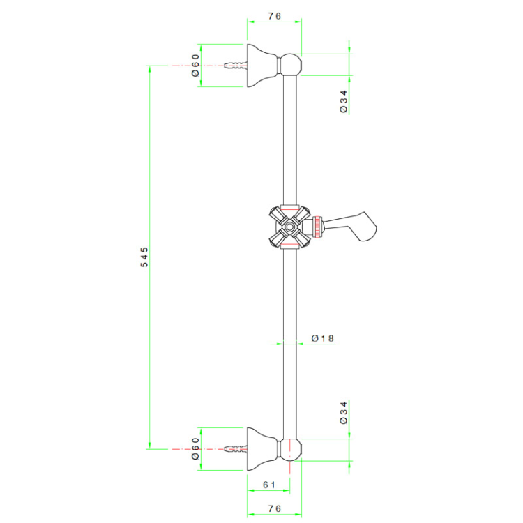 Штанга для душа, Nicolazzi, Nuova Brenta, длина штанги, мм-545, держатель ручного душа-есть, цвет-бронза Штанга для душа, Nicolazzi, Nuova Brenta, 545, цвет-бронза