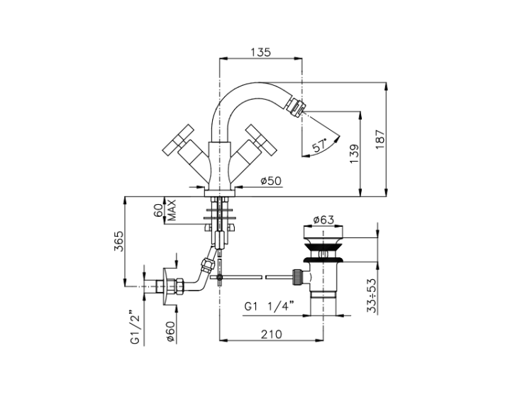 Смеситель для биде, Nicolazzi, Mac Kinley 05, тип открывания воды-двухвентильный, отверстия для монтажа-1, высота, мм-187, вынос излива, мм-135, цвет-хром Смеситель для биде, Nicolazzi, Mac Kinley 05, цвет-хром