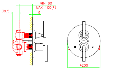 Смеситель для душа, Nicolazzi, Agora, тип открывания воды-вентильный, тип регулирования воды-термостатический картридж, монтаж-настенный встраиваемый, отверстия для монтажа-2, внутренняя часть-необходимо заказать, цвет-золото (Gold, Polished Gold) Смеситель для душа, Nicolazzi, Agora, цвет-золото (Gold, Polished Gold)