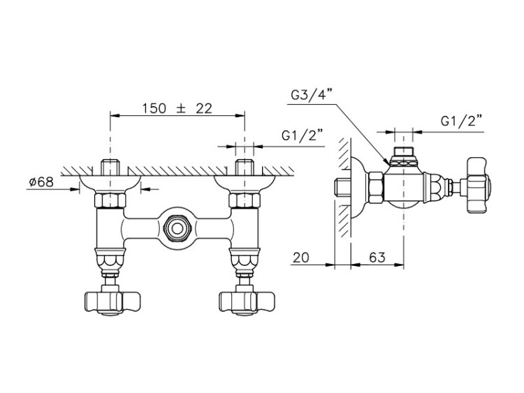 Смеситель для душа, Nicolazzi, Dames Anglaises, тип открывания воды-двухвентильный, тип регулирования воды-керамический картридж, тип установки-настенный, отверстия для монтажа-2, вид ручки-18 Dames Anglaises, цвет-Bronze Plated, без гибкого шланга и лейки Смеситель для душа, Nicolazzi, Dames Anglaises, цвет-Bronze Plated