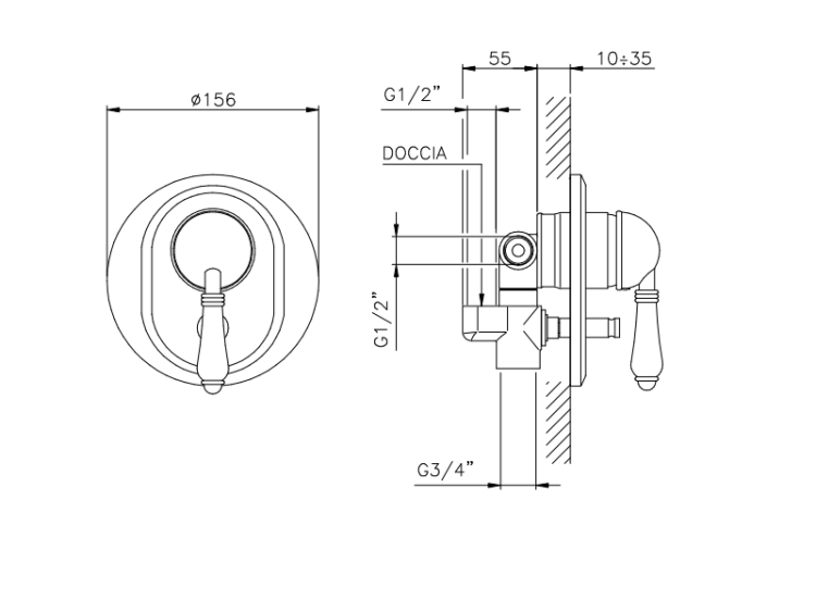 Смеситель для душа, Nicolazzi, El Capitan, тип открывания воды-однорычажный, тип регулирования воды-керамический картридж, тип установки-встраиваемый, отверстия для монтажа-1, вид ручки-75 El Capitan, внутренняя часть-необходимо заказать, цвет-Bronze, с переключателем Смеситель для душа, Nicolazzi, El Capitan, цвет-Bronze