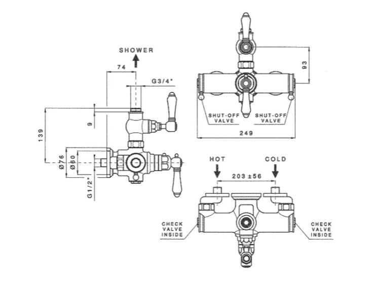 Смеситель для душа, Nicolazzi, El Capitan, тип открывания воды-рычажный, тип регулирования воды-термостатический картридж, тип установки-настенный, отверстия для монтажа-3, вид ручки-45 Teide Four, цвет-Chrome Смеситель для душа, Nicolazzi, El Capitan, цвет-Chrome