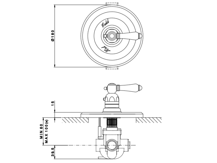 Смеситель для душа, Nicolazzi, P.M.Blanc, тип открывания воды-однорычажный, тип регулирования воды-термостатический картридж, тип установки-встраиваемый, отверстия для монтажа-1, внутренняя часть-необходимо заказать, цвет-бронза Смеситель для душа, Nicolazzi, P.M.Blanc, цвет-бронза