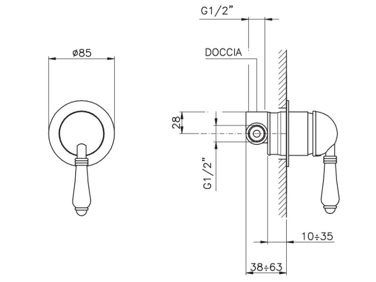 Смеситель для душа, Nicolazzi, P.M.Blanc, тип открывания воды-однорычажный, тип установки-встраиваемый, отверстия для монтажа-1, вид ручки-76 P.M.Blanc, внутренняя часть-необходимо заказать, цвет-Chrome Смеситель для душа, Nicolazzi, P.M.Blanc, цвет-Chrome