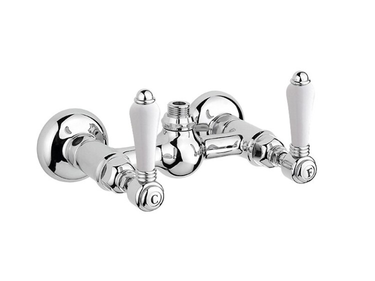 Смеситель для душа, Nicolazzi, P.M.Blanc, тип открывания воды-двухвентильный, тип регулирования воды-керамический картридж, отверстия для монтажа-2, материал ручки-керамика, цвет ручки-хром/белый, цвет-хром Смеситель для душа, Nicolazzi, P.M.Blanc, цвет-хром