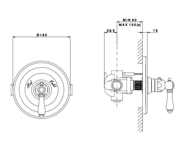 Смеситель для душа, Nicolazzi, Teide Metal, тип открывания воды-однорычажный, тип регулирования воды-термостатический картридж, тип установки-встраиваемый, отверстия для монтажа-1, вид ручки-05 Teide Metal, внутренняя часть-необходимо заказать, цвет-Chrome, 3/4" без запорного вентиля Смеситель для душа, Nicolazzi, Teide Metal, цвет-Chrome