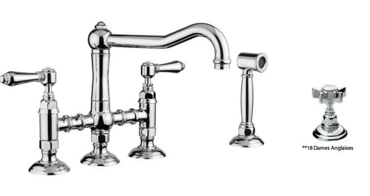 Смеситель для кухни, Nicolazzi, Cucina, тип открывания воды-вентильный, монтаж-на раковину/столешницу, отверстия для монтажа-4, высота, мм-240, вынос излива, мм-225, тип излива-поворотный, с выдвижным душем, тип подводки-гибкая, вид ручки-18 Dames Anglaises, цвет-Bronze Plated Смеситель для кухни, Nicolazzi, Cucina, цвет-Bronze Plated
