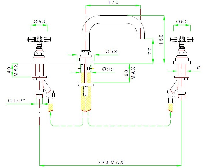 Смеситель для раковины, Nicolazzi, Agora, тип открывания воды-вентильный, монтаж-на раковину/столешницу, отверстия для монтажа-3, высота, мм-150, вынос излива, мм-170, вид ручки-05IN Agora, без автоматического слива, тип подводки-гибкая, стандарт подвода воды-1/2", цвет-хром Смеситель для раковины, Nicolazzi, Agora, цвет-хром