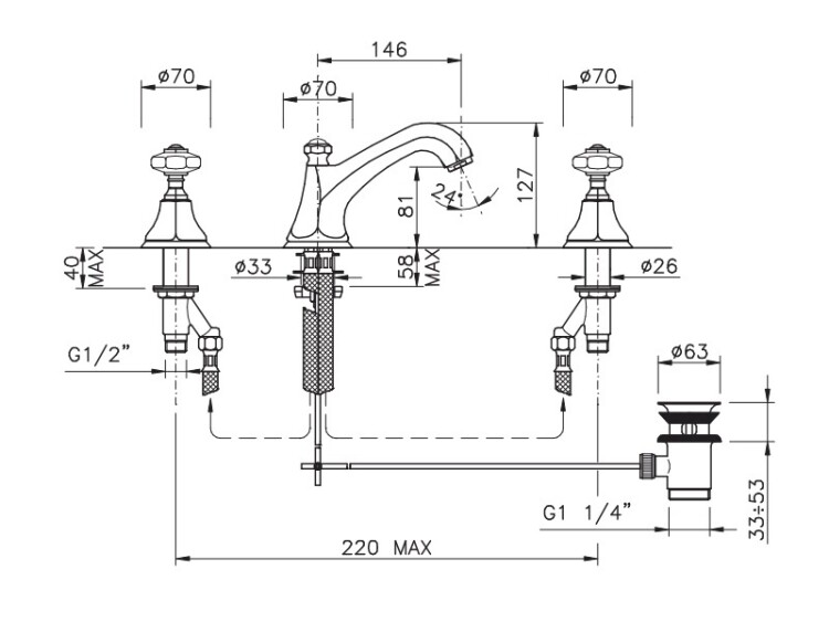 Смеситель для раковины, Nicolazzi, Crystal Handle, тип открывания воды-двухвентильный, тип регулирования воды-керамический картридж, отверстия для монтажа-3, высота, мм-127, вынос излива, мм-146, вид ручки-15 Crystal Handle, материал ручки-crystals from Swarovski, донный клапан-есть, цвет-Chrome, слив-автоматический Смеситель для раковины, Nicolazzi, Crystal Handle, цвет-Chrome