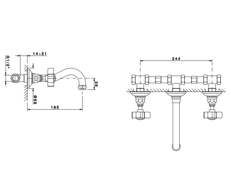 Смеситель для раковины, Nicolazzi, Dames Anglaises, тип открывания воды-двухвентильный, тип регулирования воды-керамический картридж, тип установки-настенный, отверстия для монтажа-3, вынос излива, мм-185, вид ручки-18 Dames Anglaises, цвет-Chrome Смеситель для раковины, Nicolazzi, Dames Anglaises, цвет-Chrome