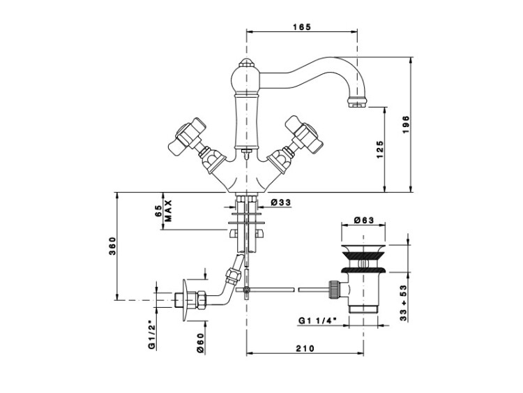 Смеситель для раковины, Nicolazzi, Dames Anglaises, тип открывания воды-двухвентильный, тип регулирования воды-керамический картридж, отверстия для монтажа-1, высота, мм-196, вынос излива, мм-165, тип излива-поворотный, вид ручки-18 Dames Anglaises, донный клапан-есть, цвет-Chrome Смеситель для раковины, Nicolazzi, Dames Anglaises, цвет-Chrome