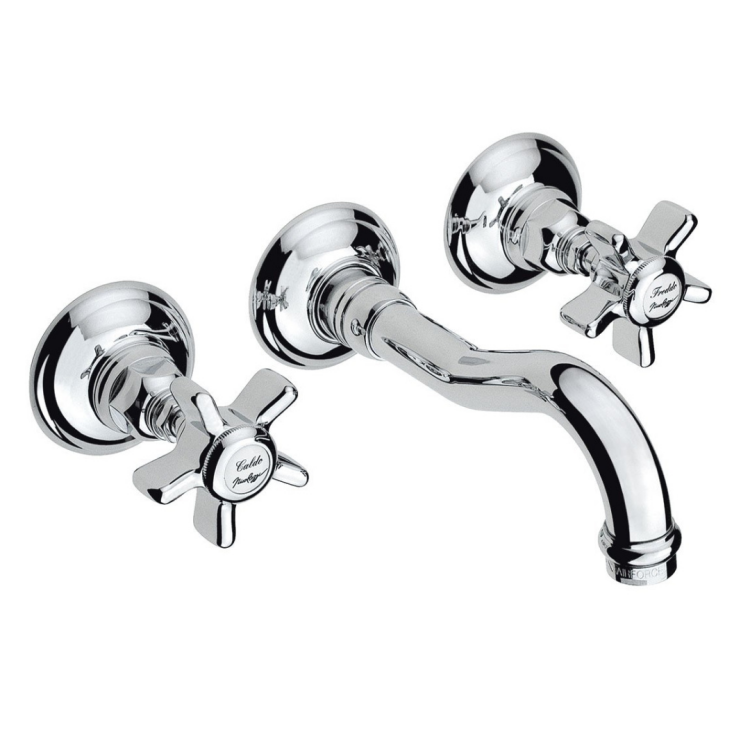 Смеситель для раковины, Nicolazzi, Dames Anglaises, тип открывания воды-вентильный, тип регулирования воды-керамическая кран-букса, монтаж-настенный встраиваемый, отверстия для монтажа-3, вынос излива, мм-185, донный клапан-отсутствует, тип подводки-жесткая, стандарт подвода воды-1/2", внутренняя часть-необходимо заказать, цвет-хром Смеситель для раковины, Nicolazzi, Dames Anglaises, цвет-хром