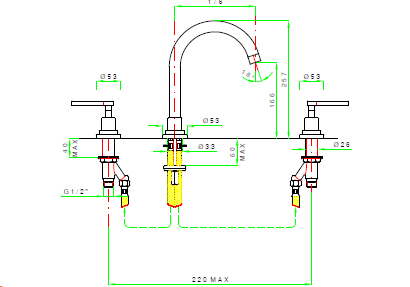 Смеситель для раковины, Nicolazzi, Mac Kinley 05, тип открывания воды-вентильный, тип регулирования воды-керамическая кран-букса, монтаж-на раковину/столешницу, отверстия для монтажа-3, высота, мм-257, вынос излива, мм-176, донный клапан-отсутствует, тип подводки-гибкая, стандарт подвода воды-1/2", цвет-Brushed Brass Смеситель для раковины, Nicolazzi, Mac Kinley 05, цвет-Brushed Brass