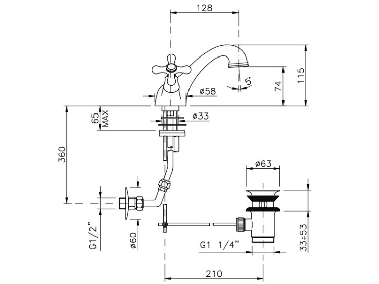 Смеситель для раковины, Nicolazzi, Nuova Brenta, тип открывания воды-двухвентильный, тип регулирования воды-керамический картридж, отверстия для монтажа-1, высота, мм-115, вынос излива, мм-128, вид ручки-Nuova Brenta, донный клапан-есть, цвет-Bronzed Plated, слив-автоматический Смеситель для раковины, Nicolazzi, Nuova Brenta, цвет-Bronzed Plated