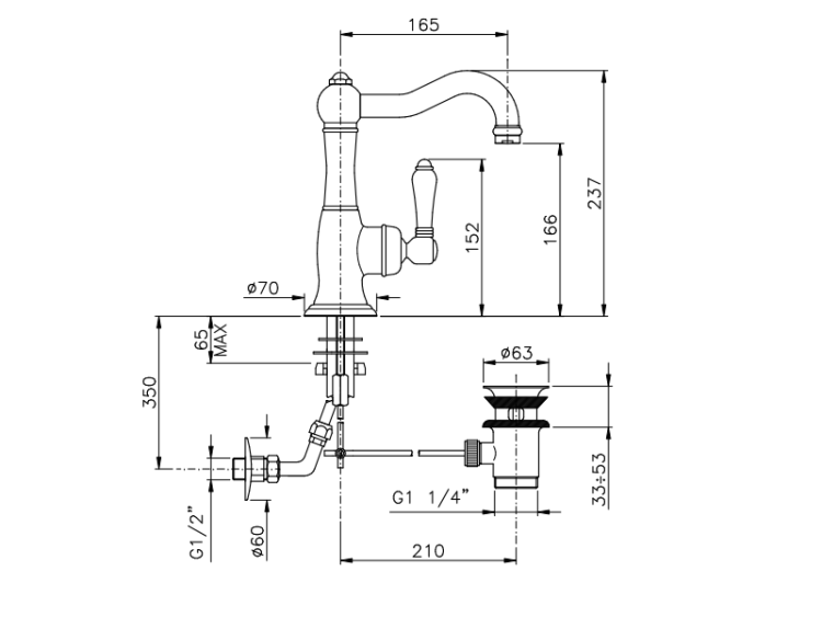 Смеситель для раковины, Nicolazzi, P.M.Blanc, тип открывания воды-однорычажный, отверстия для монтажа-1, высота, мм-237, вынос излива, мм-165, вид ручки-76C P.M.Blanc, донный клапан-есть, цвет-Bronze Plated Смеситель для раковины, Nicolazzi, P.M.Blanc, цвет-Bronze Plated