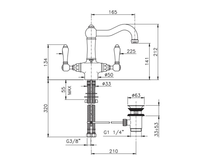 Смеситель для раковины, Nicolazzi, P.Mont Blanc, тип открывания воды-двухрычажный, тип регулирования воды-керамический картридж, отверстия для монтажа-1, высота, мм-196, вынос излива, мм-165, тип излива-поворотный, вид ручки-78 P.Mont Blanc, донный клапан-есть, цвет-Bronzed Plated Смеситель для раковины, Nicolazzi, P.Mont Blanc, цвет-Bronzed Plated