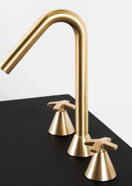 Смеситель для раковины, Nicolazzi, Star, тип открывания воды-вентильный, монтаж-на раковину/столешницу, отверстия для монтажа-3, высота, мм-280, вынос излива, мм-148, донный клапан-отсутствует, тип подводки-гибкая, стандарт подвода воды-1/2", цвет-золото Смеситель для раковины, Nicolazzi, Star, цвет-золото
