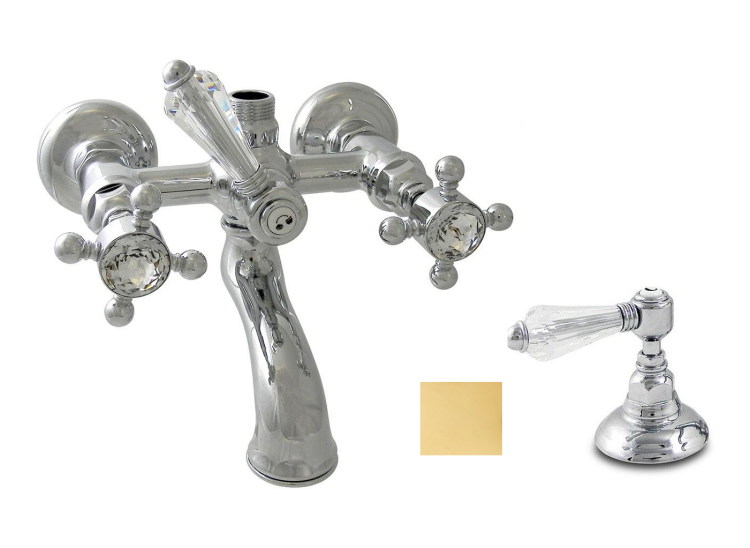 Смеситель для ванны и душа, Nicolazzi, Liberty Black, тип открывания воды-вентильный, тип регулирования воды-керамический картридж, монтаж-настенный, отверстия для монтажа-2, вынос излива, мм-92, тип излива-неподвижный, вид ручки-Cristallo Liberty 34, цвет-золото Смеситель для ванны и душа, Nicolazzi, Liberty Black, цвет-золото