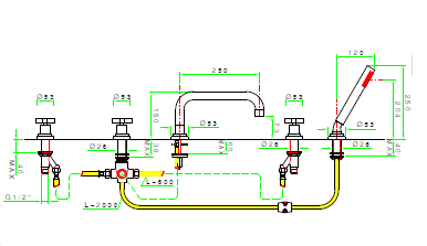 Смеситель для ванны и душа, Nicolazzi, Mac Kinley 05, тип открывания воды-вентильный, тип регулирования воды-керамическая кран-букса, монтаж-на борт ванны, отверстия для монтажа-5, вынос излива, мм-250, ручной душ-в комплекте, цвет-латунь брашированная Смеситель для ванны и душа, Nicolazzi, Mac Kinley 05, цвет-латунь брашированная