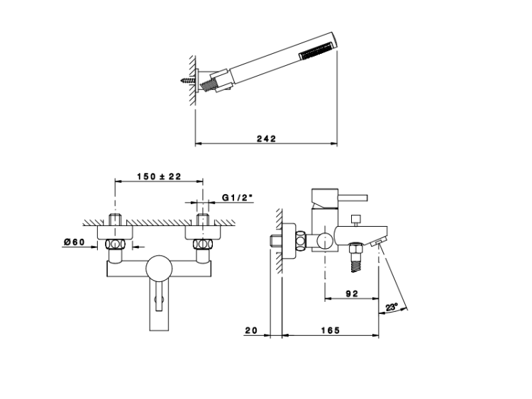 Смеситель для ванны и душа, Nicolazzi, Olympus, тип открывания воды-однорычажный, тип установки-настенный, отверстия для монтажа-3, вынос излива, мм-92, комплектация-ручной душ, держатель ручного душа, шланг, цвет-Chrome Смеситель для ванны и душа, Nicolazzi, Olympus, цвет-Chrome