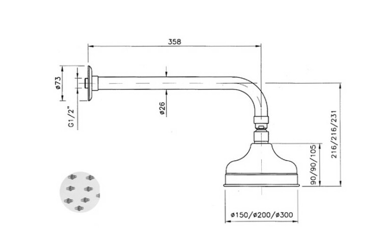 Верхний душ, Nicolazzi, Doccia, тип установки-настенный, ширина, мм-200, глубина, мм-200, высота, мм-90, форма-круглая, держатель-есть, размер держателя-358, цвет-Chrome Верхний душ, Nicolazzi, Doccia, шгв 200*200*90, цвет-Chrome