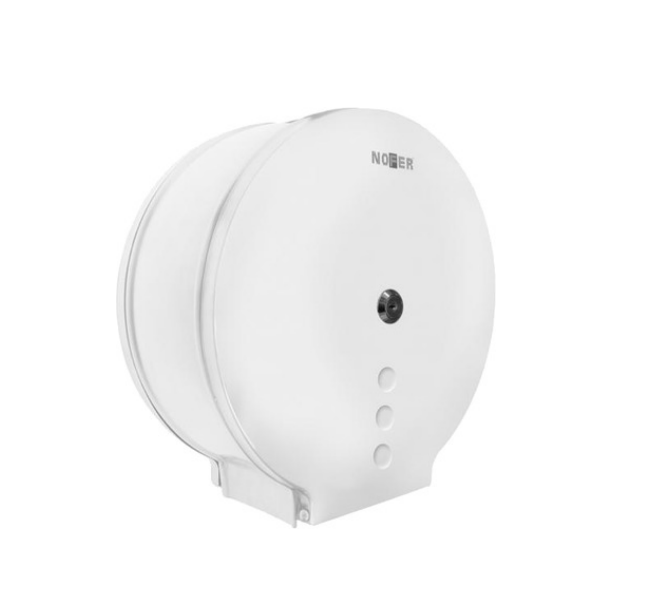 Диспенсер для туалетной бумаги, Nofer, круглый, с крышкой, ширина, мм-258, глубина, мм-115, высота, мм-268, материал-нержавеющая сталь, тип установки-настенный, цвет-белый Диспенсер для туалетной бумаги, Nofer, круглый, шгв 258*115*268, цвет-белый