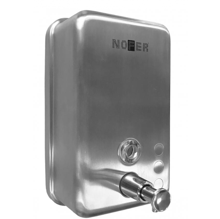 Дозатор для жидкого мыла, Nofer, механический (нажимной), ширина, мм-122, глубина, мм-135, высота, мм-207, ёмкость(мл)-1200, тип установки-настенный, материал колбы-нержавеющая сталь, цвет дозатора-сталь нержавеющая матовая Дозатор для жидкого мыла, Nofer, шгв 122*135*207, цвет дозатора-сталь нержавеющая матовая