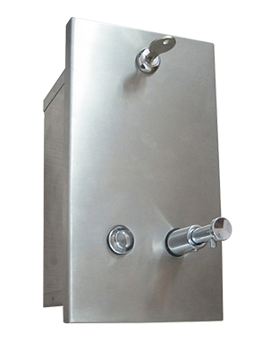 Дозатор для жидкого мыла, Nofer, механический (нажимной), ширина, мм-150, глубина, мм-110, высота, мм-260, ёмкость(мл)-1200, тип установки-настенный встраиваемый, материал колбы-нержавеющая сталь AISI 304, цвет колбы-сталь матовая, в комплекте-съемная передняя панель с замком безопасности, цвет дозатора-сталь матовая Дозатор для жидкого мыла, Nofer, шгв 150*110*260, цвет дозатора-сталь матовая