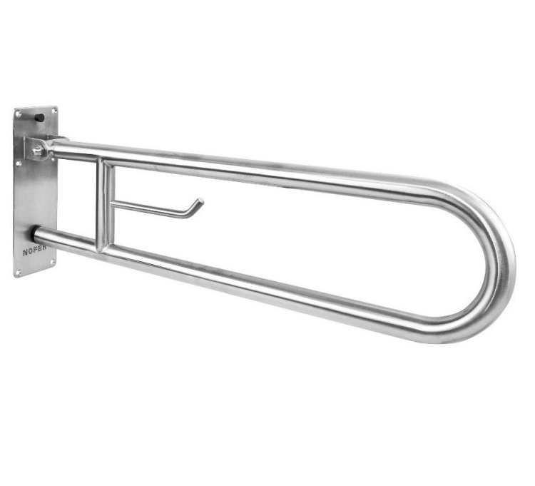 Поручень, Nofer, полукруглый, откидной, с держателем для туалетной бумаги, ширина, мм-850, глубина, мм-32, высота, мм-192, материал-нержавеющая сталь, цвет-сталь Поручень, Nofer, откидной, шгв 850*32*192, цвет-сталь