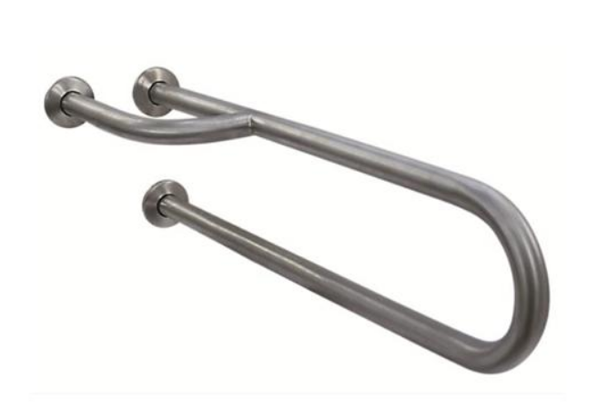 Поручень, Nofer, полукруглый, левый, неподвижный с тремя точками опоры, длина, мм-600, материал-нержавеющая сталь, крепления в комплекте, цвет-сталь матовая Поручень, Nofer, полукруглый левый неподвижный с тремя точками опоры, д 600, цвет-сталь матовая