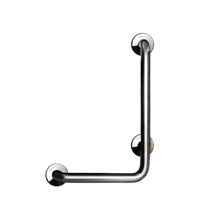 Поручень, Nofer, угловой, левый, ширина, мм-400, высота, мм-700, материал-нержавеющая сталь, крепления в комплекте, цвет-хром Поручень, Nofer, угловой, левый, шв 400*700, цвет-хром
