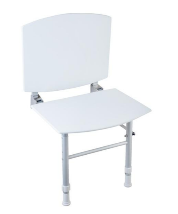 Сиденье для душа, Nofer, Nylon, ширина, мм-420, глубина, мм-420, со спинкой и регулируемыми ножками, рекомендуемая высота установки 450-500 мм от зоны сиденья до пола, тип установки-настенный, материал-полипропилен, с защитой от бактерий, кронштейны изготовлены из нержавеющей стали AISI 304, крепления в комплекте, рекомендуемый максимальный вес-100 кг, цвет-белый Сиденье для душа, Nofer, Nylon, шг 420*420, цвет-белый