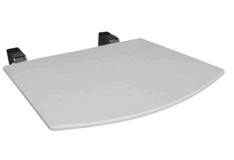 Сиденье для душа, Nofer, откидное без спинки, ширина, мм-350, глубина, мм-420, тип установки-настенный, материал-полипропилен с защитой от бактерий, кронштейны изготовлены из нержавеющей стали,.цвет-сталь/белый Сиденье для душа, Nofer, шг 350*420, цвет-сталь/белый