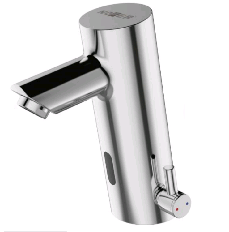 Смеситель для раковины, Nofer, тип открывания воды-сенсорный, тип регулирования воды-электронный датчик, монтаж-на раковину/столешницу, отверстия для монтажа-1, высота, мм-159, вынос излива, мм-133, тип излива-неподвижный, донный клапан-отсутствует, тип подводки-гибкая, стандарт подвода воды-1/2", цвет-хром Смеситель для раковины, Nofer, автоматический, цвет-хром