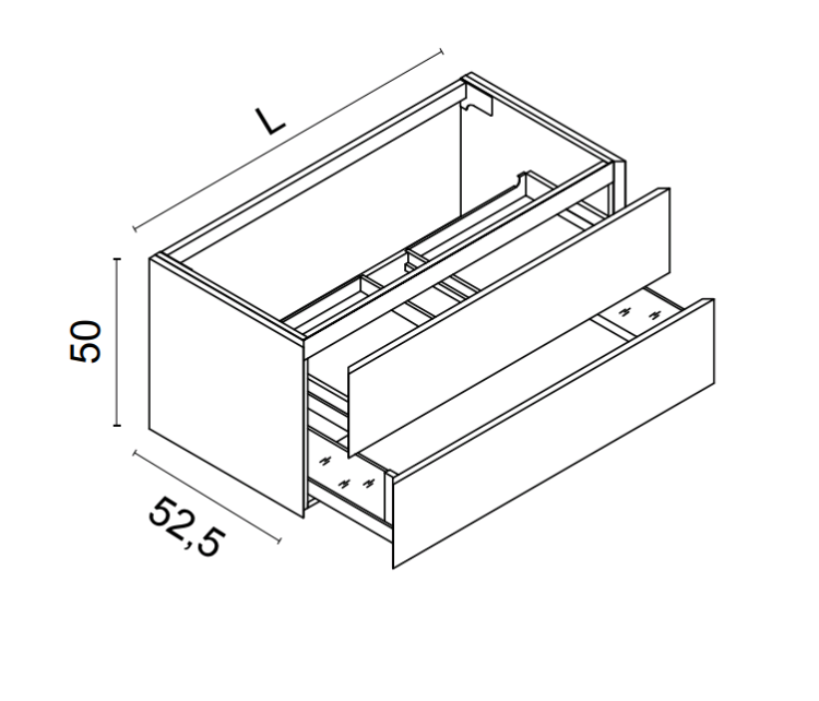 Тумба под раковину, Oasis, Daphne, ширина, мм-1050, глубина, мм-525, высота, мм-500, тип установки-подвесной, раковина-необходимо заказать, столешница-необходимо заказать, ящики-2, материал фасада-стекло, цвет-белый Тумба под раковину, Oasis, Daphne, шгв 1050*525*500, раковина-необходимо заказать, цвет-белый