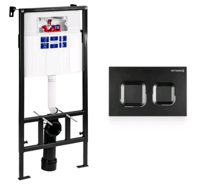 Инсталляция, Bettoserb, Sava Fix Slim, для унитаза, ширина, мм-520, глубина, мм-200, высота, мм-1136, материал-сталь, тип установки-к стене, тип смыва-двойной, объем смыва, л-6, клавиша смыва-есть, тип управления-механический, материал клавиши-пластик, форма кнопок-квадратная, цвет клавиши-белый, крепления в комплекте, цвет клавиши-чёрный матовый Инсталляция, Bettoserb, Sava Fix Slim, для унитаза, шгв 520*200*1136, цвет клавиши-чёрный матовый