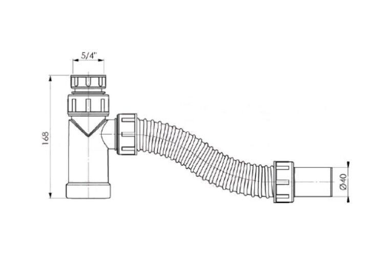 Сифон, Bettoserb, для раковин, трубный, высота,мм-168, длина трубы,мм-250, размер ввод/отвод-5/4" х 40", донный клапан-отсутствует, пропускная способность,л/м-30, материал-полипропилен, ПВХ Сифон, Bettoserb, трубный, 5/4" х 40", полипропилен