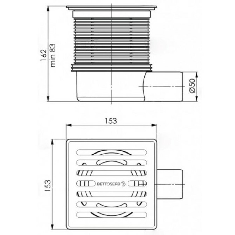 Трап, Bettoserb, горизонтальный, общий размер швд,мм-153*162*197 мм, DN-50, высота корпуса, мм-62, надставной элемент-есть, мультисифон с силиконовой мембраной, вид затвора-сухой/гидрозатвор, пропускная способность, л/сек-1.16, декоративная решетка-есть, форма решетки-квадратная, размер решетки, мм-153 x 153, материал решетки-нержавеющая сталь, цвет решетки-хром Трап, Bettoserb, горизонтальный, DN-50, цвет решетки-хром