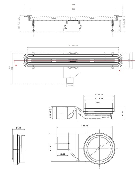 Душевой лоток, Bettoserb, Slim Line, ширина, мм-116, длина, мм-650, высота, мм-120, монтаж-в пол, вид затвора-гидрозатвор, пропускная способность, л/сек-0.8, сифон-S-образный из PP, опоры-есть 2 шт, декоративная дизайн-вставка-есть, материал дизайн-вставки-нержавеющая сталь, материал рамки-алюминий, цвет-хром матовый Душевой лоток, Bettoserb, Slim Line, шдв 116*650*120, цвет-хром матовый