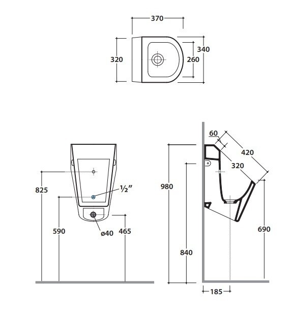 Писсуар, Globo, FORTY3, тип установки-подвесной, ширина, мм-340, глубина, мм-370, высота, мм-570, подвод воды-скрытый, сифон-есть, материал-керамика, вид грязеотталкивающего покрытия-CERASLIDE, BATAFORM, крепления в комплекте, цвет-белый Писсуар, Globo, FORTY3, шгв 340*370*570, CERASLIDE, BATAFORM, цвет-белый
