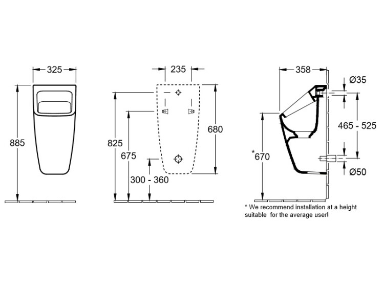 Писсуар, Villeroy&Boch, Architectura, тип установки-подвесной, ширина, мм-325, глубина, мм-355, высота, мм-680, подвод воды-скрытый, в комплекте-1 слив, 1 крепежный комплект, 1 сифон-картридж ViChange, 1 керамическая крышка слива, материал-керамика, цвет-альпийский белый Писсуар, Villeroy&Boch, Architectura, шгв 325*355*680, цвет-альпийский белый